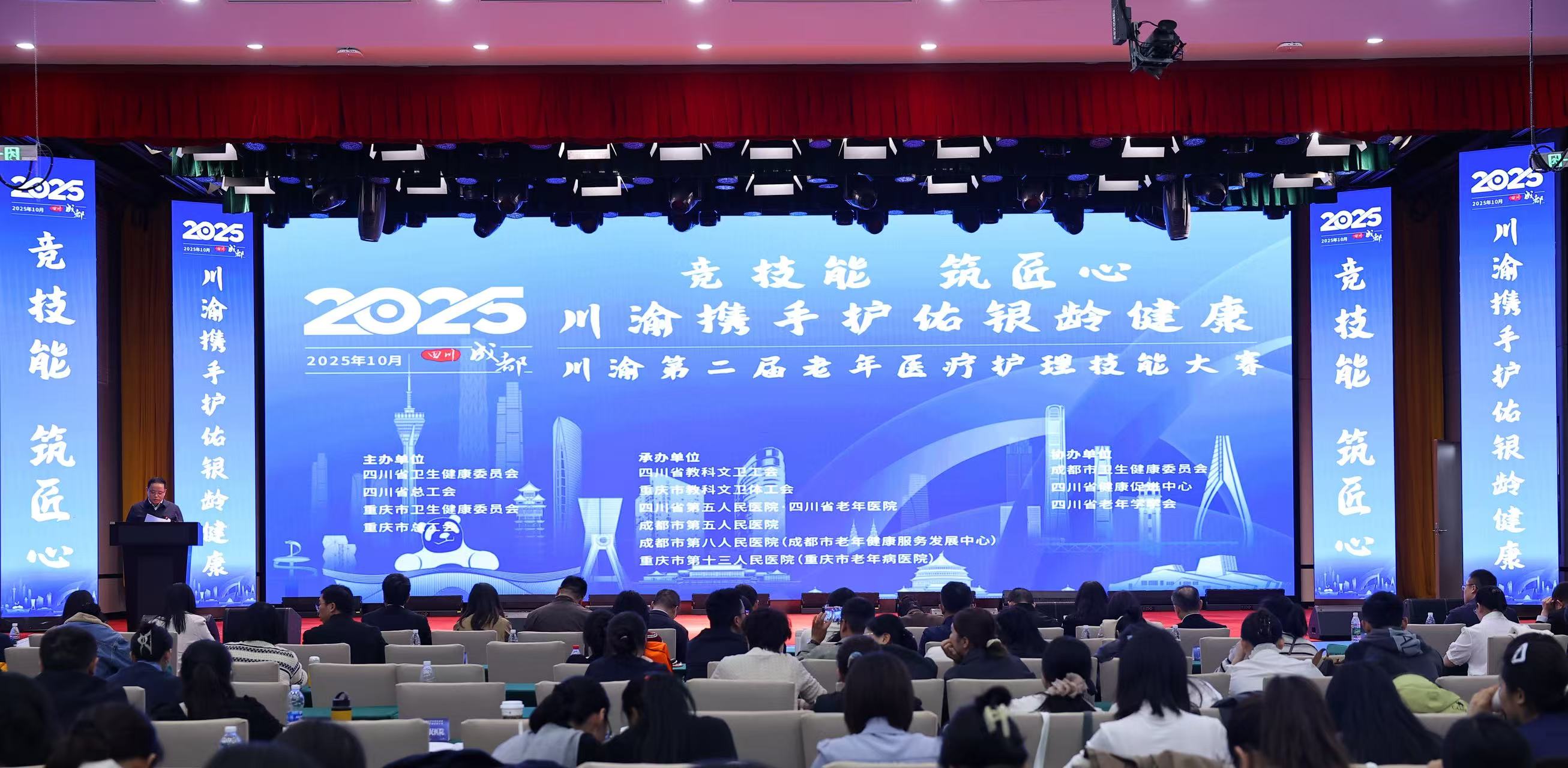 本次大赛由四川省卫生健康委员会、四川省总工会、重庆市卫生健康委员会、重庆市总工会主办,四川省第五人民医院、成都市第五人民医院、成都市第八人民医院、重庆市第十三人民医院承办。四川、重庆两地医疗卫生机构、有关单位等100余人观摩比赛。