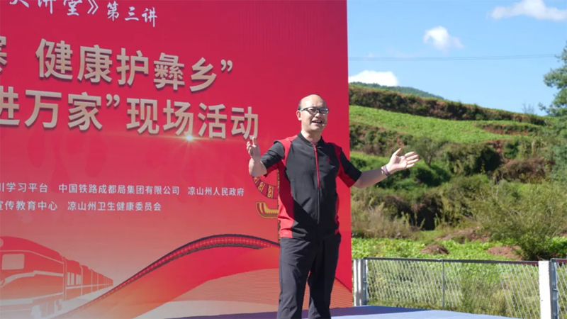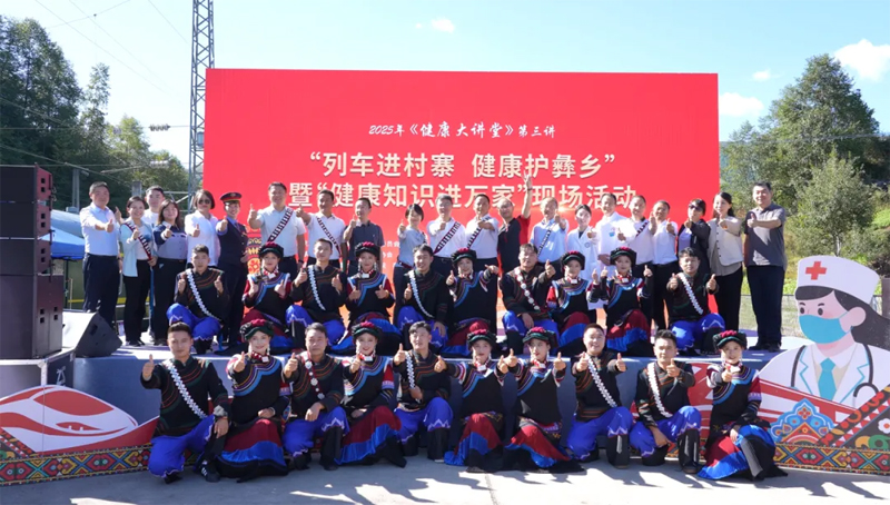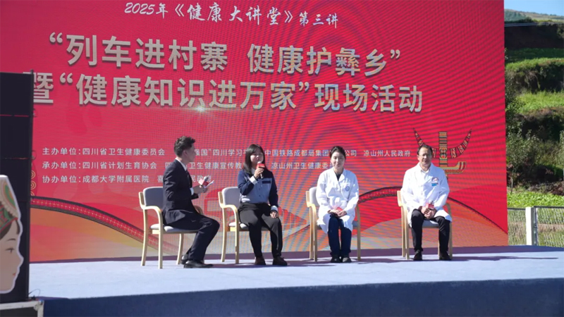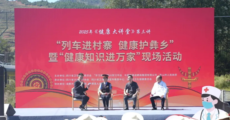 9月25日,由四川省卫生健康委员会、“学习强国”四川学习平台、中国铁路成都局集团有限公司、凉山州人民政府主办,四川省计划生育协会、四川省卫生健康宣传教育中心、凉山州卫生健康委员会承办,成都大学附属医院、喜德县人民政府协办的2025年《健康大讲堂》第三讲“列车进村寨 健康护彝乡”暨“健康知识进万家”现场活动在凉山州喜德县举行。省卫生健康委党组成员、副主任、机关党委书记张峰,凉山州人民政府副秘书长苦沙鲁,中国铁路成都局集团有限公司社保部副主任李莉等参加活动。