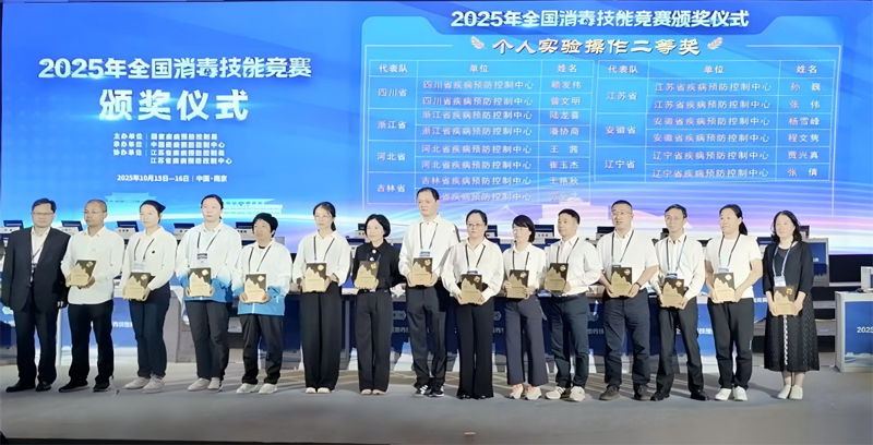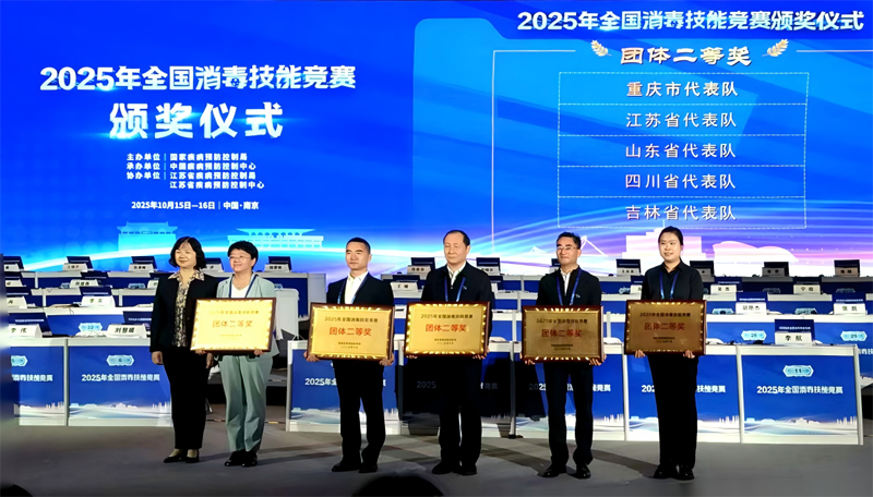 2025年10月15日至16日,由国家疾控局主办的全国消毒技能竞赛在江苏省南京市圆满结束,来自全国37支代表队的185名选手同场竞技,经过两天激烈角逐,四川省代表队凭借扎实的专业技能和稳定的现场发挥,取得“综合团体二等奖”及“实验室操作技能二等奖”优异成绩,展现了四川消毒专业队伍的良好风貌与技术实力。