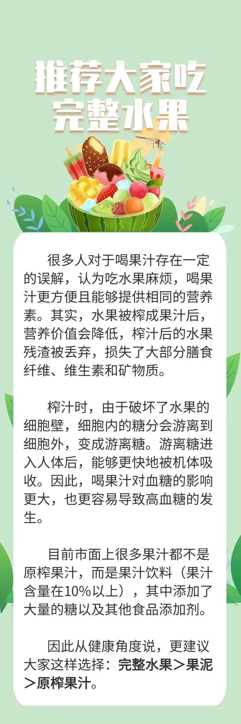 夏天,各种水果大量上市。对于如何健康吃水果,很多人还是有些困惑:是吃水果还是喝果汁?每次可以吃多少?什么时间吃最好?今天给您一起来科普。