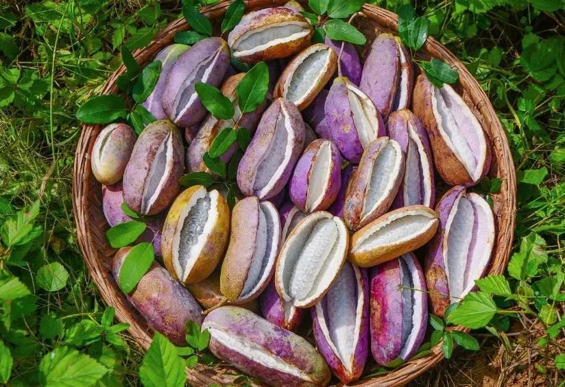 八月瓜学名叫三叶木通,又名野香蕉、牛腰子果、八月炸、中华肾果等,主要分布在我国的贵州、云南、四川、湖南、湖北等地的山区。