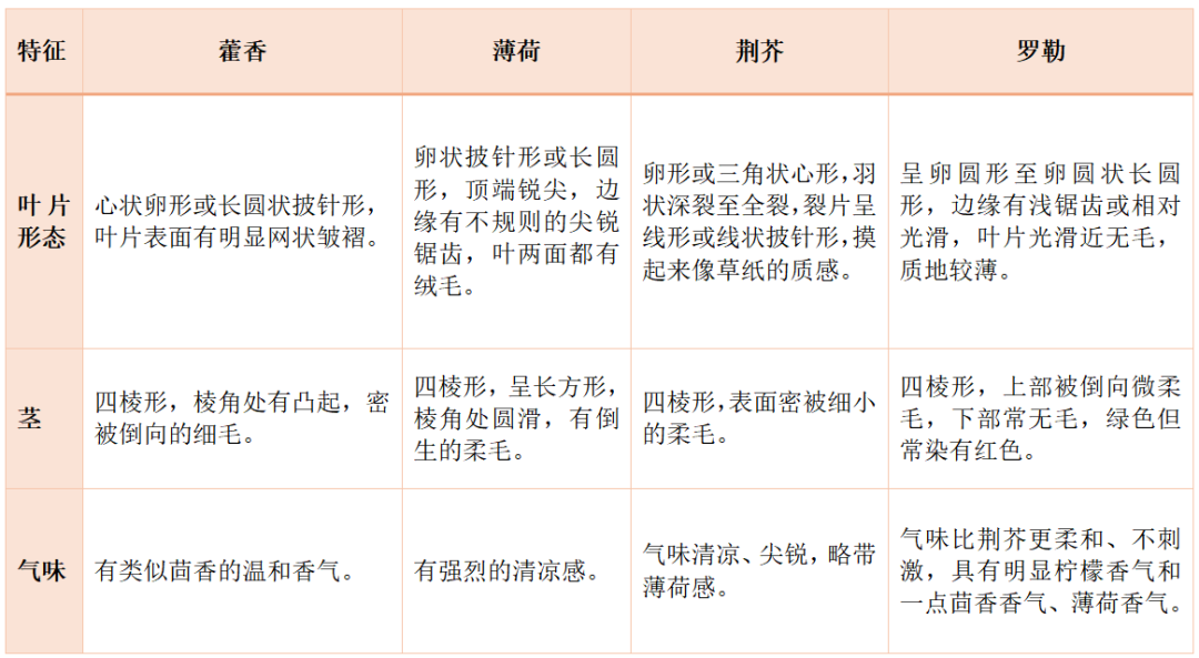 看到这里,你心动了吗?其实像藿香这类的特色植物很多,例如薄荷、荆芥、罗勒等,可能有不少人会把这几种调料弄混,今天我们特意整理了一张表格,希望能帮助大家辨别。