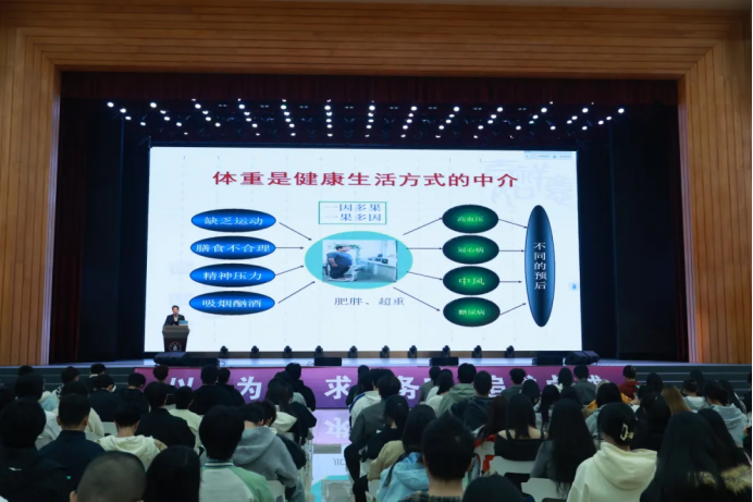宣讲现场,四川大学体育学院副院长韩海军,聚焦“科学健身与合理饮食——健康与健康体重的关键”主题。针对大学生常见的“运动碎片化”“体重焦虑” 等问题,系统阐述了实现健康体重与提升整体健康的科学路径,让同学们认识到健康的本质,找到“吃”“动”平衡的切入点,同时结合校园场景推荐了简单、有效、易行的锻炼方式,给出三餐粗细搭配、少糖少盐少油炸等饮食建议,鼓励大家从日常小事起步。