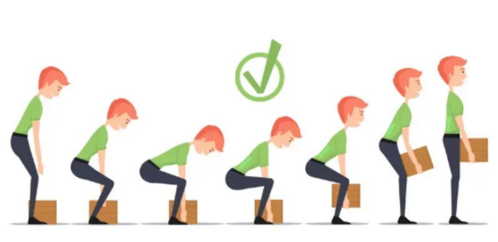 通过这种借助,臀部和腿部肌肉力量的支撑起身将重物提起的搬重物动作可以避免腰部受伤。