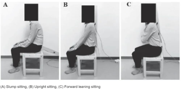 (a)懒汉坐姿(b)直立坐姿(c)前倾坐姿 证明不同坐姿。图片来源参考文献[14]