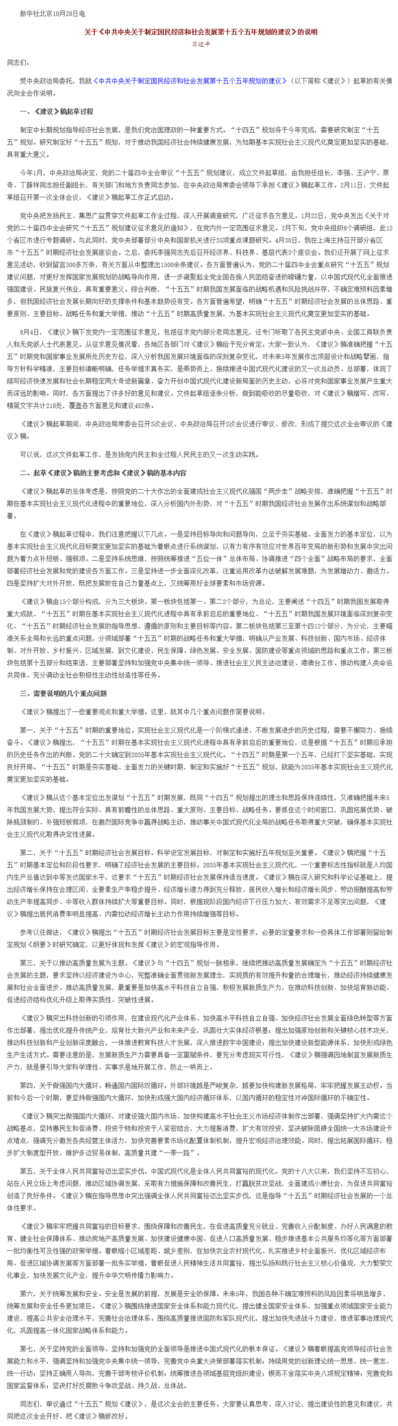 习近平:关于《中共中央关于制定国民经济和社会发展第十五个五年规划的建议》的说明