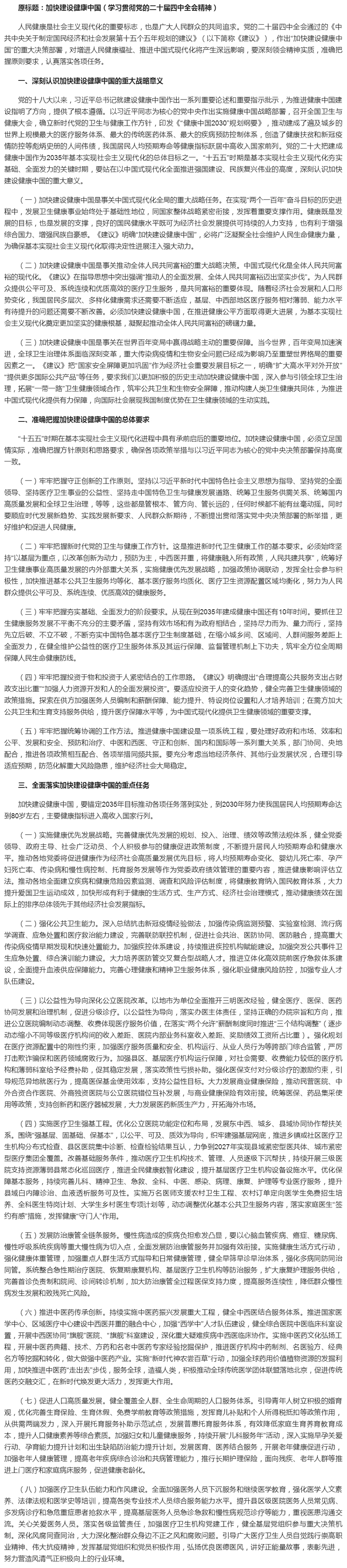 雷海潮人民日报撰文:加快建设健康中国