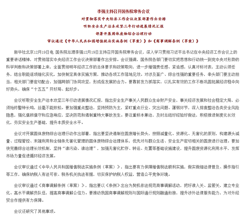 李强主持召开国务院常务会议 对贯彻落实中央经济工作会议决策部署作出安排