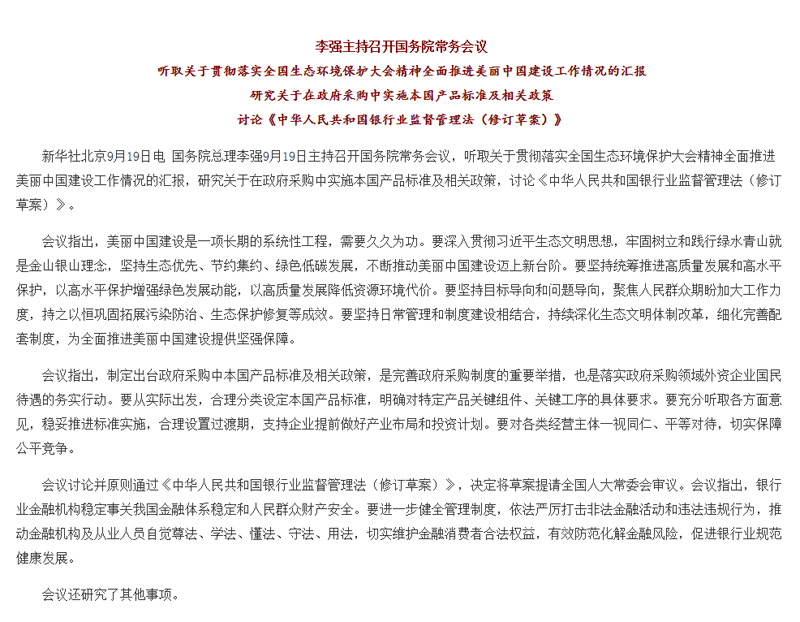 听取关于贯彻落实全国生态环境保护大会精神全面推进美丽中国建设工作情况的汇报等