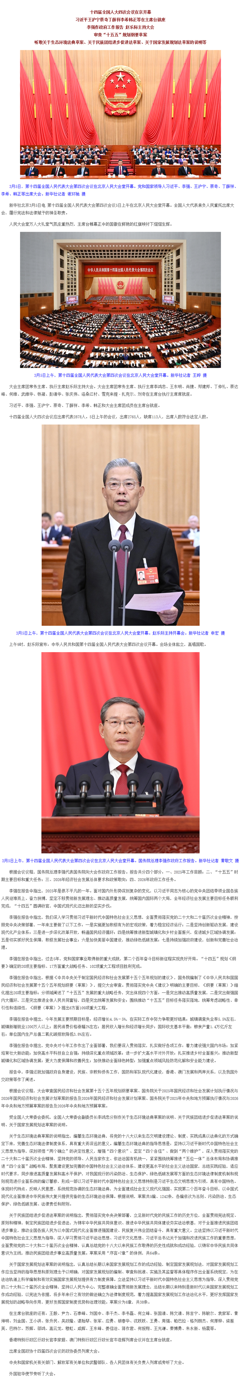 十四届全国人大四次会议开幕 习近平等在主席台就座