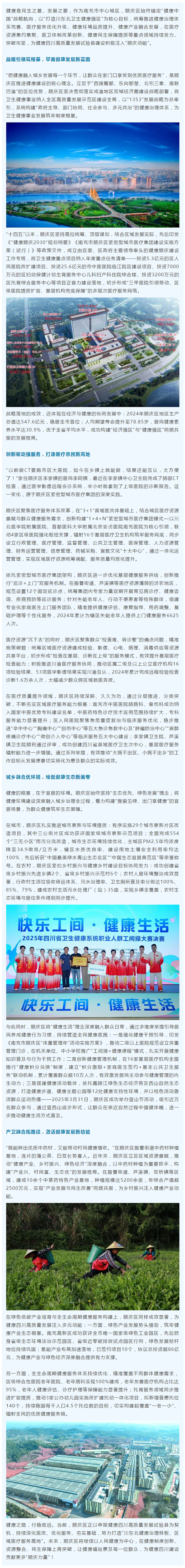 南充市顺庆区锚定高质量、聚力新突破,绘就健康顺庆新图景——2025健康四川高质量发展试验县建设进行时㉗