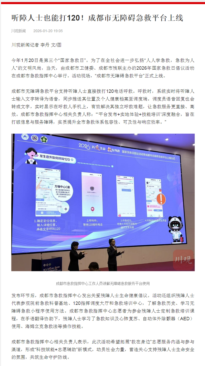 听障人士也能打120!成都市无障碍急救平台上线