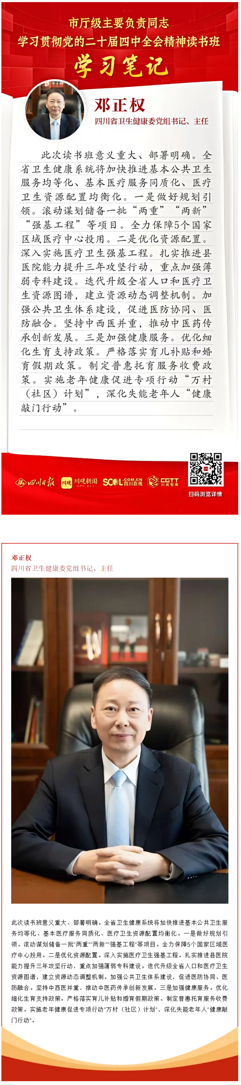 四川省卫生健康委党组书记、主任邓正权 :聚力攻坚、重点突破,以“十五五”卫生健康良好开局服务全省发展大局丨读书班学习笔记